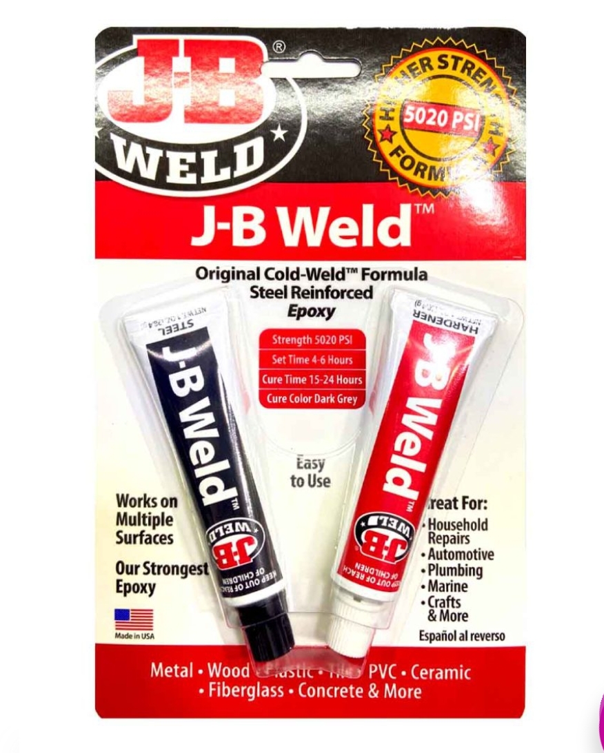 چسب دوقلوی اپوکسی جی بی ولد JB WELD چسب دوقلو اپوکسی جی بی ولد (JB Weld) یک سیستم اپوکسی دوقلو اصلی است که برای انجام تعمیرات قوی و دائمی در برابر فلز و سطوح مختلف به کار می رود چسب با نسبت ۱:۱ مخلوط شده و پس از خشک شدن، اتصال دائمی ایجاد می کند. می توان پس از خشک چسب شدن روی آن شکل داده، نخورده، سنگیده، تراشیده و سوراخ ها در آن ایجاد کرد کاربردهای اصلی این چسب شامل تعمیرات خانگی، صنعت خودرو، لوله کشی، دریایی، صنایع دستی و موارد دیگر می شود. همچنین می توان از آن در تعمیرات خودرو، ساختمان، فیبرگلاس، فلزات و سایر سطوح متنوع استفاده کرد.